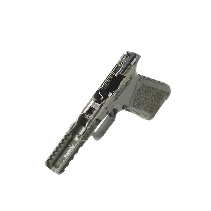 Dette er en serialisert ramme med skyterorientert ergonomi. Rammen har polerte rustfrie stål overmoldede skinner som er klare til bygging. Den er laget med en bransjeledende proprietær polymerblanding og er kompatibel med Glock Gen 3 17, 22 og 31 rammer. Hver ramme er montert av en sertifisert våpenmekaniker som bruker SCT Manufacturing lavere deler kit som har blitt testet og bevist å møte eller overgå OEM-spesifikasjoner.