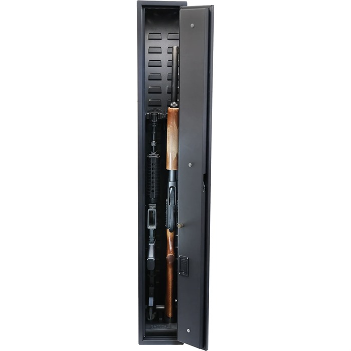 FAST BOX MODEL 47 WITH BIOMETRIC KEYPAD The Fast Box™ Model 47 Hidden Gun Safe is the ultimate solution for gun owners seeking secure, rapid-access firearm storage in compact or discreet spaces. Weighing just 50 pounds, this ultralight yet heavy-duty safe is crafted from 14-gauge welded steel with a textured powder-coat finish, ensuring durability and resistance to tampering. Its low-profile design (47″ x 13″ x 6.5″) allows for seamless integration under beds, in closets, vehicle trunks, or RVs, making it ideal for decentralized home defense or on-the-go security. The Model 47 features SecureIt’s exclusive High-Stress Fast-Access (HSFA) locking system, engineered for lightning-fast, reliable access even in high-pressure situations. The customizable 4-digit push-button keypad, backlit for low-light conditions, is paired with a capacitive fingerprint scanner for added convenience and a manual key override for redundancy. With no third-party backdoors, your security remains solely in your control. Versatile mounting options set the Model 47 apart. Pre-drilled holes and included hardware allow for horizontal storage of one long gun (up to 46.5″) or vertical storage of two firearms with optics, such as an AR-15 and a shotgun. The optional CradleGrid™ system enables flexible organization for rifles, shotguns, and accessories. Whether for home defense, tactical readiness, or travel, the Fast Box Model 47 delivers military-grade security with unmatched accessibility. FEATURES: Rapid Access: HSFA locking with backlit keypad and fingerprint scanner ensures quick, reliable entry, even in the dark or under stress. Discreet and Versatile: Mount horizontally under a bed, vertically in a closet, or in a vehicle for hidden, secure storage. Military-Grade Durability: Built with 14-gauge steel, a 3-point locking system, and a full-length piano-hinge door to meet military small arms storage standards. Customizable Storage: Optional CradleGrid™ system and accessories allow tailored organization for firearms and gear. Portable and Easy to Install: Lightweight at 50 pounds with pre-drilled mounting holes for quick setup in any environment. SPECIFICATIONS: Weight: 47 lbs External Dimensions: H 47.25″ x W 6.5″ x D 13″ (or 14″ with the knob) Internal Dimensions: H 47″ x W 6″ x D 12″ (Dimensions are based on a vertical orientation) Suggested Capacity: 2 long guns INCLUDED IN BOX: x1 Fast Box™ Model 47 Gun Safe x1 Stock Base – Included with the Fast Box Model 47 (each base holds 2 buttstocks) x2 Cradles – Included with the Fast Box Model 47 (Bungees not included) Customizable 4-digit push-button keypad with a capacitive fingerprint scanner and a USB-C power port (battery and USB-C cord not included) x2 Override Keys