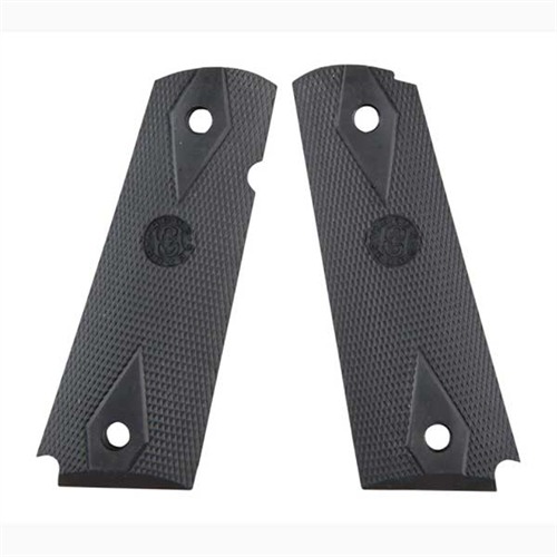 Håndfyllende grep bidrar til å dempe rekyl ved å fordele støtet jevnt. Modeller med fingergroper for semi-autos strammer grepet oppover, inn i avtrekkerbeskyttelsen for bedre rekylkontroll. Alle tregrep er skåret fra importert, utvalgte kvaliteter av hardtre. Moldede gummigrep demper rekyl og har en sklisikker, pebble-finish. 1911 Auto sjakkert grep har et Double Diamond-mønster.