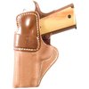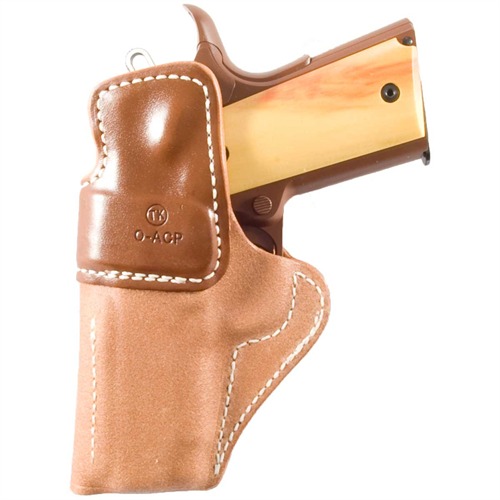 Klassisk innvortes holster som tilbyr optimal skjuling og komfort. Med åpen topp for rask trekk; våtformet for en nøyaktig passform som gir utmerket hold. Stålforsterket topp forblir alltid åpen for enkel, en-hånds reholstring. Den ru siden av teksturen griper klærne for å forhindre at holsteret flytter seg. Beskyttende bakflap forhindrer at tommel-sikkerheten setter seg fast i klærne; holder sluttstykket fra å grave seg inn i ribbeina dine. Sydd inn lær-siktekanal. Beltehemper har sikre, enveis snaps.