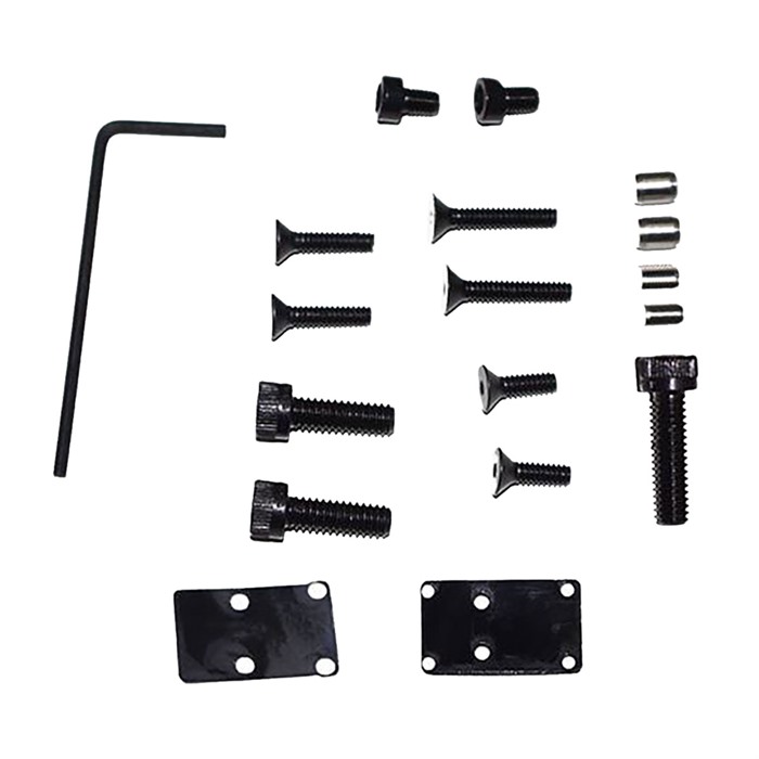 Det følger med alt nødvendig utstyr, inkludert skruer, dowel pins og pakninger. Vennligst se kompatibilitetstabellen nedenfor for mer informasjon om bruk med ulike optikker samt nødvendig hardware for å montere hvert sikte.