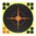 - 8" Crosshair – Rundt mål med fluorescerende oransje "crosshair"-mønster, viser kulehull som sprut av lys fluorescerende oransje ved treff.