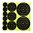 Ingen behov for kikkertsikter eller kikkert. Når kula treffer, blir det svarte området erstattet av en lys halo i fluorescerende chartreuse-farge som gjør treffet umiddelbart synlig for det blotte øye. Praktisk, peel-n-stick, selvklebende bakside.
