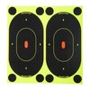 No need for spotting scopes or binoculars. When the bullet hits, the black is replaced by a bright halo of fluorescent, chartreuse color that makes the hit instantly visible to the naked eye. Convenient, peel-n-stick, self-adhesive backing. 8" Crosshair – Round target with fluorescent orange “crosshair” pattern, shows bullet holes as splashes of bright fluorescent orange on impact. Available in paks of 6 or 50 targets. Includes repair pasters. 8" Laser Reflective – Round bullseye target with stick-on reflective target centers that provide maximum contrast of aiming dot from laser sight or laser boresighter. Turns fluorescent chartreuse on bullet impact. 1", 2", 3" Bullseye - 12 sheets with 72-1", 36-2", 24-3" targets. 9" Oval - 5 targets, 15 replacement centers.