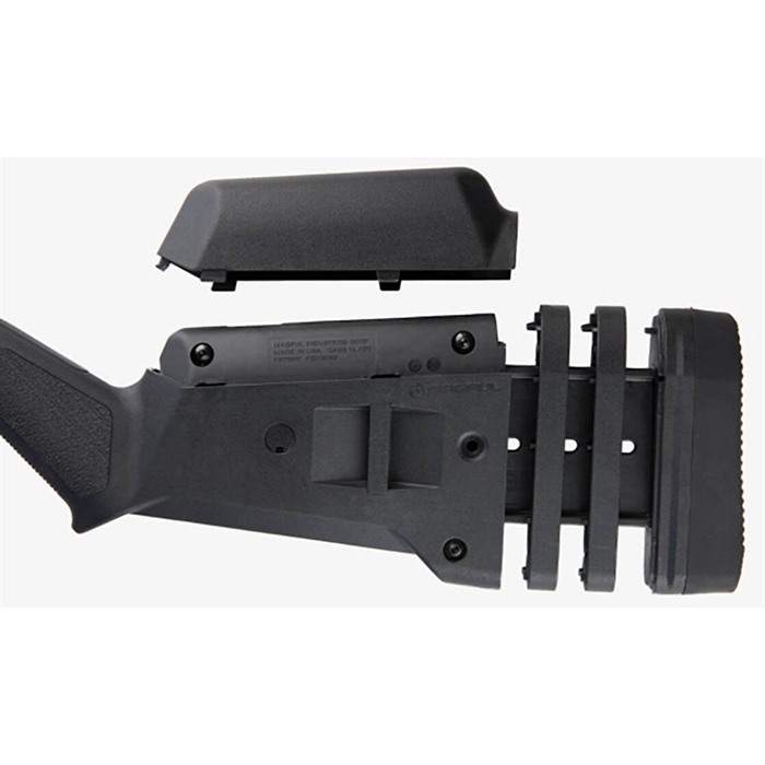 The SGA Stock is an ambidextrous, user-configurable buttstock designed to add much-needed adjustability to the tried-and-true Remington 870 12-gauge shotgun. Featuring a spacer system for length of pull adjustment, improved grip ergonomics, recoil-reducing butt-pad, optional cheek risers for use with optics / raised sights, and other accessories, The SGA 870 brings Magpul design and engineering to another classic American firearm. Available in Black, Flat Dark Earth, Stealth Gray and Orange to adapt to the mission at hand. Made in the USA. FEATURES Spacer-adjustable lop in 1/2" increments from 12.5" to 14.5" Recoil-reducing butt-pad Integral right & left 1.25" sling loops Enhanced grip angle ergonomics SPECS Platform: Shotgun Compatibility: Remington 870 12-gauge shotgun Butt-Pad Dimensions: 1.5 x 5.0 in. LOP Adjustment Range: ~12.3-14.3 in. Weight: 1.5 lbs. (with two Spacers installed) Width of Butt, max: 1.5 in.