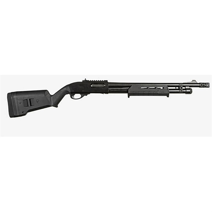 SPECS: Reinforced, hard-molded polymer, Black, Dark Earth, Gray, or Orange. Fits 12 gauge Remington 870 only. Mounting hardware and instructions included.