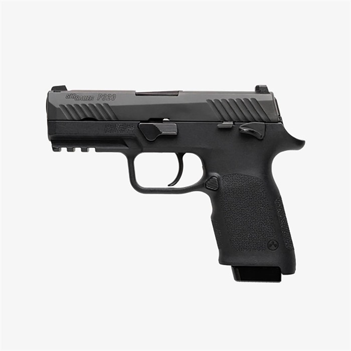 After 25 years of making the best polymer accessories for firearms, Magpul is bringing that experience with enhanced features, function and fit to pistols. The Magpul EHG SG9 Compact grip frame for the SIG Sauer P320 with manual safety functions with OEM P320 trigger modules, OEM 15-round magazines and magazine base plates, and small components and accessories. The EHG SG9 features an integral “carry-sized” magazine well flare and includes a Picatinny rail for lights or lasers. As an added bonus, the frame also comes with the Magpul-designed Magazine Release installed, which is reversible for left-handed shooters. This steel magazine release is finished in QPQ to resist corrosion and wear, and the release’s contoured surface features custom jimping to ensure positive engagement with the shooter’s finger when changing magazines. The compact frame wears a ¾-scale TSP texturing to provide a sure purchase on the grip, even in wet conditions. The frame is approximately 1.25" wide and weighs just over 4 ounces. For additional retention measures, a lanyard slot is included at the bottom of the frame’s backstrap. Made in the USA. Drop-In Replacement Functions with all OEM parts and 15-round magazines Ergonomic Design Flared magazine well ¾-scale TSP textured grip surface Lanyard slot 1913 Picatinny Rail Accepts most pistol lights and lasers Magpul Magazine Pre-Installed Reversible for left-handed shooters Contoured and textured surface for positive engagement Fits all SIG P320-family compact models that accept a 15-round magazine. NOTE: This model is for pistols with a manual safety. Magazines: Compatible with OEM SIG P320 15-round and larger magazines. Holsters: Known fit with Safariland models 7390-7TS, 7362-7TS, 7360-7TS RDS; Bladetech Total Eclipse; Raven Concealment models Vanguard, Perun, Perun-LC; Blackhawk models ARC, SERPA CQC; and Fobus Evolution. Lights: Compatible with Surefire X300 Family/XH Family, Streamlight TLR family, and LMD Pistol Enhancer