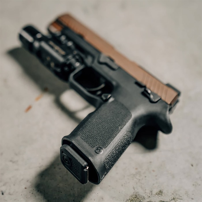 After 25 years of making the best polymer accessories for firearms, Magpul is bringing that experience with enhanced features, function and fit to pistols. The Magpul EHG SG9 Full Size grip frame for the SIG Sauer P320 with manual safety functions with OEM P320 trigger modules, OEM 17-round magazines and magazine base plates, and small components and accessories. The EHG SG9 features an integral “carry-sized” magazine well flare and includes a Picatinny rail for lights or lasers. As an added bonus, the frame also comes with the Magpul-designed Magazine Release installed, which is reversible for left-handed shooters. This steel magazine release is finished in QPQ to resist corrosion and wear, and the release’s contoured surface features custom jimping to ensure positive engagement with the shooter’s finger when changing magazines. The full size frame wears a ¾-scale TSP texturing to provide a sure purchase on the grip, even in wet conditions. The frame is approximately 1.25" wide and weighs just over 4 ounces. For additional retention measures, a lanyard slot is included at the bottom of the frame’s backstrap. Made in the USA. Drop-In Replacement Functions with all OEM parts and 17-round magazines Ergonomic Design Flared magazine well ¾-scale TSP textured grip surface Lanyard slot 1913 Picatinny Rail Accepts most pistol lights and lasers Reversible for left-handed shooters Contoured and textured surface for positive engagement Finished in QPQ for enhanced wear and corrosion resistance Fits all SIG P320-family full size models that accept a 17-round magazine. NOTE: This model is for pistols with a manual safety. Magazines: Compatible with OEM SIG P320 17-round and larger magazines or our own Magpul AMAG™ 17 SG9™ – SIG P320™/M17™ Holsters: Known fit with Safariland models 7390-7TS, 7362-7TS, 7360-7TS RDS; Bladetech Total Eclipse; Raven Concealment models Vanguard, Perun, Perun-LC; Blackhawk models ARC, SERPA CQC; and Fobus Evolution. Lights: Compatible with Surefire X300 Family/XH Family, Streamlight TLR family, and LMD Pistol Enhancer