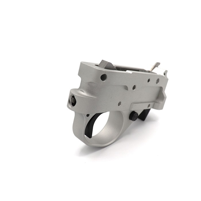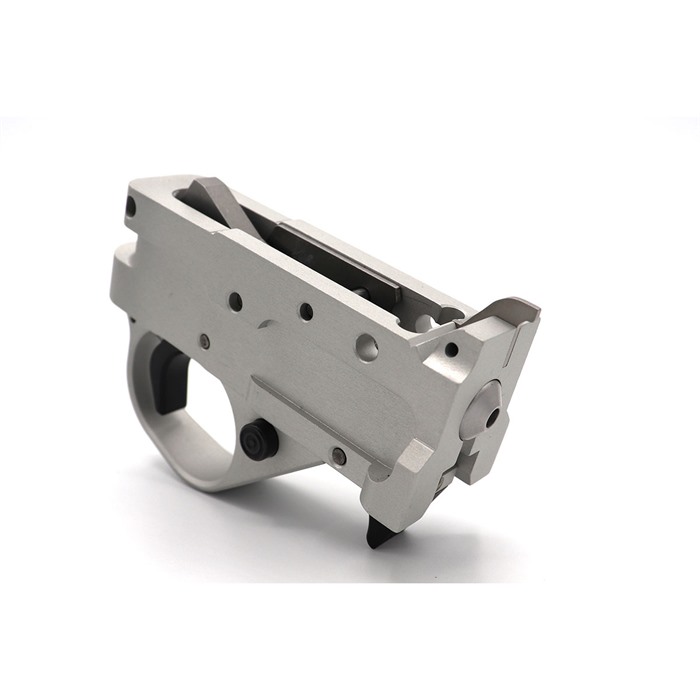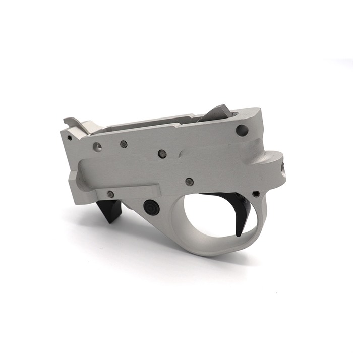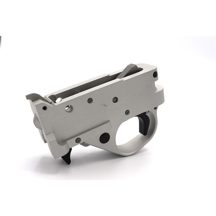 Dette aftermarket 10/22 avtrekket er designet for å justeres fra 1 1/2 pounds til 5 pounds med et enkelt skruetrekker. Den leveres standard i en matte, refleksfri finish i sølv eller svart anodisert aluminium, med vår redesignede auto bolt release og et byttbart magasinhevesystem.