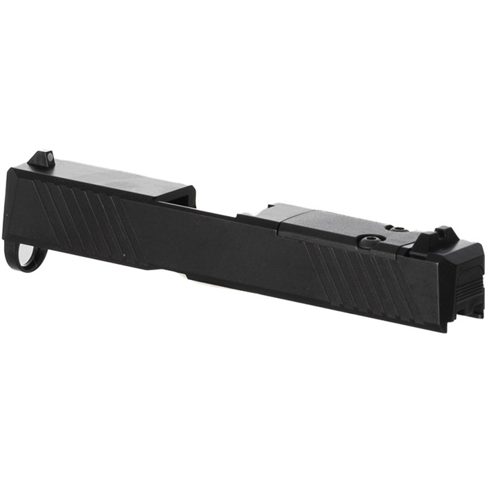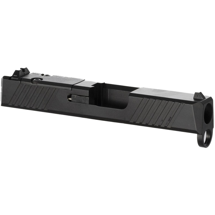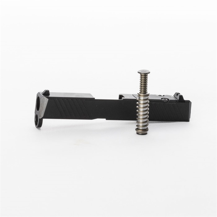 Build a Compact Custom EDC Pistol With Integral Red Dot Sight Mount Do you want to upgrade for your factory G43 or build a brand-new custom gun on a compatible frame from another manufacturer? The Brownells Slide for Glock® 43 pistols is just the ticket for this project! Our slide features a pre-cut slot for easy, secure, low-profile mounting of a reflex red dot sight that fits the Holosun 407K footprint (adapter plates are available separately for RMR sights). If you're not mounting a red dot at the moment, we've included a lightweight polymer cover plate to neatly fill the slot. Our G43 Slide comes with standard-height front and rear sights, which can serve as your primaries or as backup "iron" sights when paired with a red dot sight. You can get your Brownells RMR Slide for Glock® 43 with the standard solid top or with a "window" cutout up front that enhances air flow to cool the barrel - ideal for hard-working action competition pistols. If you have an upgraded barrel with a contrasting finish or a unique exterior pattern (fluting, spirals, flames, etc.) the window lets you show it off! Or install our ported barrel for Glock 43, and combustion gas venting from the barrel ports through the window will counteract muzzle rise and help you keep the sights on the target for subsequent shots. There's no need to install a bulky compensator on the muzzle, which means your new comped pistol will still fit holsters for the standard Glock® 43. Fits Glock® 43 pistols & clones Built-in mounting slot for reflex sights with the Holosun 407K footprint Optic slot cover plate & recoil spring assembly also included Factory front/rear iron sights installed Machined from 416 stainless steel billet, black Nitride finish Available with traditional Solid top or distinctive top Window cutout Each of our slides for Glock® starts life as a billet of 416 stainless steel that is machined to Glock® factory specifications inside, so it’ll accept factory or aftermarket barrels and internal "small" parts. Each slide comes with a tough, wear-resistant black Nitride finish. This slide fits standard Glock® factory G43 frames and compatible aftermarket frames. On the sides at the rear, you'll find distinctive wide, shallow cocking serrations that give excellent "purchase" to rack the slide, plus a mirror set of serrations up front that aid in manipulating the slide to press-check the chamber. Both sets of serrations make it easy to manipulate your pistol's slide from any angle and in any position. And we'll admit it: these serrations just look cool, too! Whether you're doing an ambitious "built from scratch" custom pistol or you're upgrading a factory Glock 43 for enhanced versatility, a Brownells slide is the perfect component for your project! Brownells Gun Tech™ Note: Channel liner required for these slides (#078000649). Channel liner is a press fit and requires a tool to install; we recommend #777100017.
