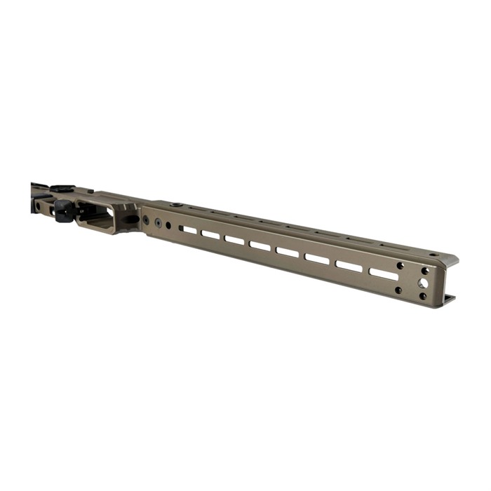 AERO PRECISION SOLUS COMPETITION CHASSIS The Solus Competition Chassis was designed to create the most precise and repeatable rifle to body connection. Modularity is another critical component of the Solus chassis a high focus on general ergonomics and adjustability ensures chassis fitment goes smoothly. Integrating industry-standard attachments like M-LOK and Arca Swiss allows a true custom experience no matter the intended use. Chassis Center Section Features: Remington 700 short action footprint V-Block bedding surfaces to ensure consistent lockup among different manufacture actions. Compatibility with AICS and AIAIW detachable box magazines Ambidextrous magazine catch Adjustable magazine catch (to accommodate for variances in magazine tolerances) Adjustable thumb rest Compatible with tangless AR15 pistol grips. Machined from custom 7075-T6 aluminum forgings Forend Features: Arca and M-LOK compatible forend with M-LOK slots at the 3,6 and 9 o'clock positions 6 QD sling sockets Compatible with Aero Precision's optional night vision bridge and bipod spigot Can accommodate up to 1.25" barrel diameters Stock Features: 7-position adjustable length of pull Variable position adjustable cheek comb Adjustable cant recoil pad 5 QD sling sockets Included bag rider