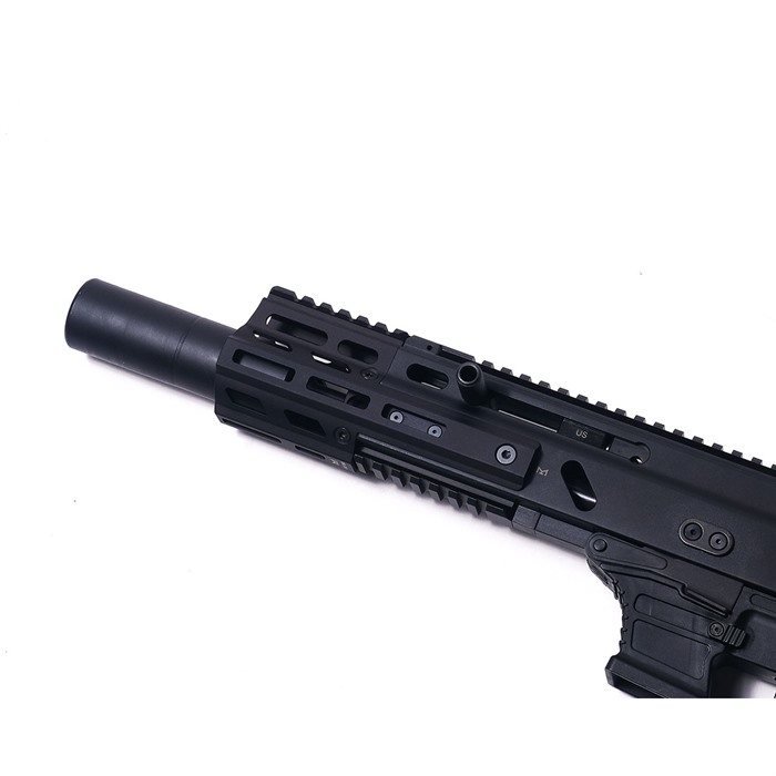 Designed to fit the Stribog SP9 models with MLOK receivers. The SRX6 was developed with the same mindset as the MREX rail lineup. Made from strong 6061-T6 aluminum, this durable receiver extension was built for comfort and ergonomics. The added 3 inches gives you an enhanced grip further down the Stribog while providing plenty of real estate for added accessories. The SRX was also designed around the option of adding a variety of suppressors, with plenty of ventilation to ensure a comfortable, cool grip even after extended suppressor use. SPECS: Length: 9.8 in Rail weight: 7.7 oz Overall weight: 9.7 oz Finish: Anodized black type 3 hard coat or FDE cerakote Material: 6061 T6 aircraft grade aluminum Internal diameter: 1.72 in INCLUDED: Rail Bridge (2) Bridge clamps Hardware kit Sticker QR code to installation instructions Tooling not included ***Must be used in conjunction with SMX3 or another muzzle extending device such as a suppressor***