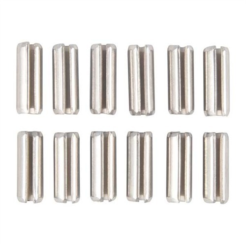 Med den økende bruken av roll pins i våpen, har vi lett etter et godt assortement av dem i rustfritt stål å tilby. Endelig har vi funnet det - med 850 pinner i 8 diametre og ulike lengder (se nedenfor). Dette bør dekke de fleste våpenbehov! Perfekt for andre verkstedjobber også. Lag jigger, festemidler, eller bruk dem til å erstatte taper pins, dowels, groove pins, set screws, osv. De vil ikke gli eller vibrere ut. Enkle å bruke, da de ikke krever gjenging eller taping. Kan kuttes til ønsket lengde. Bruk Roll Pin Punches for sikker og positiv fjerning.