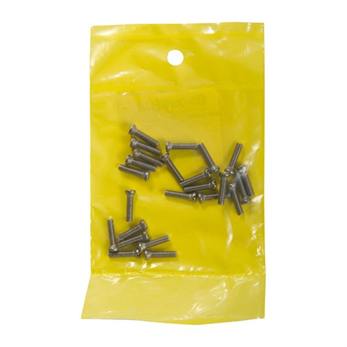 STAINLESS STEEL SIGHT BASE SCREWS fra BROWNELLS er det perfekte valget for å sikre dine ribber, ringer og baser. Denne pakken inneholder 24 skruer, med to dusin av hver av seks forskjellige stiler/størrelser, alt pakket i en praktisk plastboks.