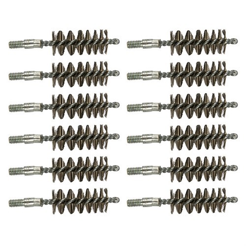 Shanken er i ett stykke, løkket og viklet (ikke to, tvunnet sammen og kuttet av). Rustfritt stål borebørste - For alvorlig blybelastede, tilsmussede eller rustne løp, kan den aggressive rengjøringshandlingen til en rustfri stålbørste hjelpe med å få dem rene. Men, den aggressive handlingen akselererer slitasje, og regelmessig bruk kan forkorte løpetid.