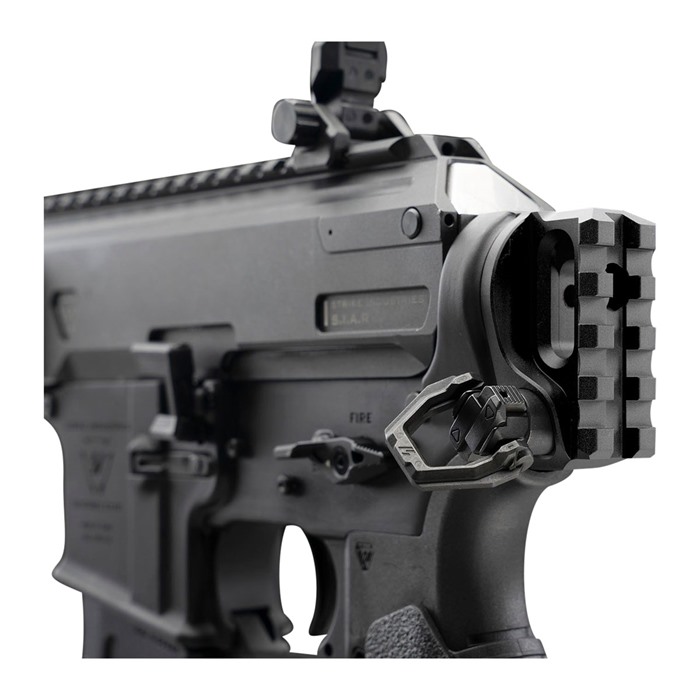 Strike AR Picatinny Stock Adapter-mekanismen skrus inn i en standard AR bakre 1 3/16"-16 HSS høyrehåndsgjenge og har en anti-løsne detent som er veldig positiv og taktil, samtidig som den holder bakre detentfjær fanget for bakre nedtakingspinne. 1913 Picatinny-delen av denne adapteren inkluderer en 4-spors skinne.