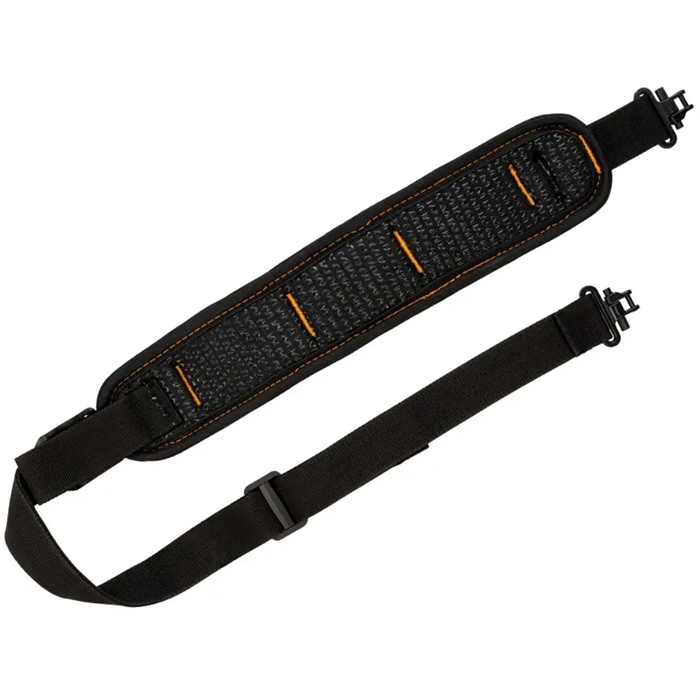 MUDDY SUMMIT RIDGE ?FLEXIBLE COMFORT SLING? This sling is constructed from soft, flexible closed-cell neoprene with Flex Stretch backing, offering both comfort and durability. It significantly reduces the weight felt, making it easier to carry for extended periods. Equipped with an Anti-slip Gripper, it stays secure over rough terrain, providing reliable support. The adjustable sling length ensures a customized fit, while built-in shell holders add convenient storage. Strong metal quick-detach swivels are included for added durability and ease of use. FEATURES: Dimensions: 16.1in L x 3in W x 2in H Reduces the weight felt on your shoulder, making it easier for extended hunts Anti-slip Gripper to stay secure Adjustable sling length for a perfect fit Shell holders Strong metal quick-detach swivels