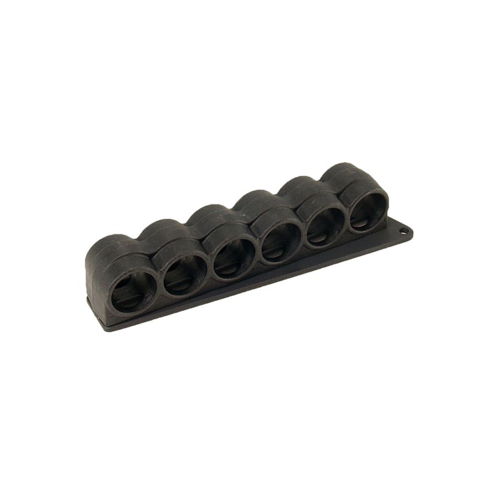 Denne shotshell carrier-systemet, tilgjengelig i en seks skall konfigurasjon, har skallholdere som er injeksjonsstøpt fra glassfiberfylt polymer, sikret til mottakeren med en lett aluminiums bakplate med messing gjengede innsatser. SureShell Polymer Carrier inkluderer også et innovativt dobbelt gummifrikjsonssystem som pålitelig holder shotshells på plass.