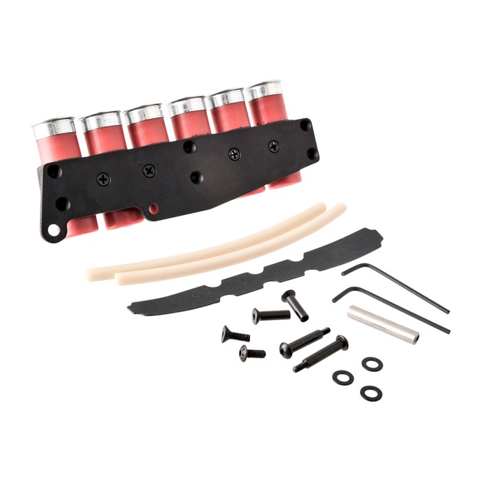 SureShell® Polymer Shotshell Carriers er laget av slitesterk, støtsikker polymer. Dette systemet for oppbevaring av patroner, tilgjengelig i en seks-patron konfigurasjon, har patronholdere sprøytestøpt fra glassforsterket polymer. De er festet til mottakeren med en lett aluminiums bakplate med messinginnsatser.