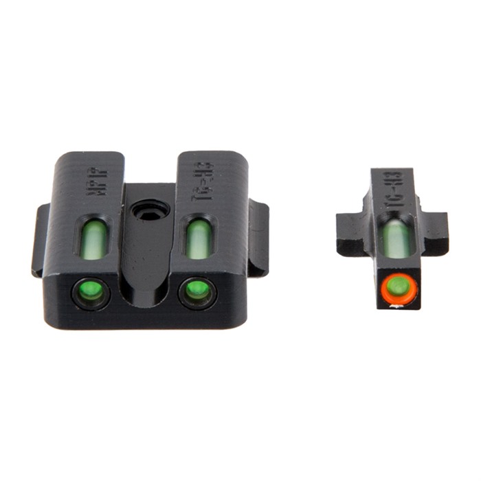 The TFX Pro Night Sights are constructed with duty or military use in mind. These sights feature both a Tritium vial for constant illumination, as well as fiber optic rods that amplify ambient light. Not only do these sights have both Tritum vials and fiber optics, but they are hermetically sealed in a redesigned TFX capsule, that provides superior protection against oils, chemicals and cleaning solvents. No more worrying about damaging your sights when cleaning! Front Sight features an orange outline, providing a contrast in colors and faster target acquisition. Rear sights features a U-notch design and angled front face for emergency slide racking. Sight bodies are CNC machined steel and have a Truglo “fortress” finish. TFX Pro Sights sets are Made in the USA, using Swiss Tritium.