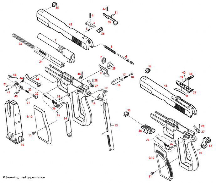 Velkommen til vår side dedikert til Browning® Hi-Power Deltegning, hvor du finner omfattende ressurser for å forstå og vedlikeholde denne ikoniske pistolen. Her tilbyr vi detaljerte deltegninger som gir deg innsikt i hvert aspekt av våpenet, fra mekaniske komponenter til monteringsdetaljer. Enten du er en erfaren gunsmith eller en entusiast som ønsker å lære mer, vil våre ressurser hjelpe deg med å navigere i reparasjoner og oppgraderinger. Utforsk våre illustrasjoner og tekniske spesifikasjoner for å få mest mulig ut av din Browning® Hi-Power.