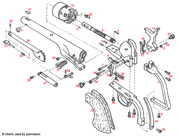 Uberti® 1860 Army Deltegning gir en omfattende oversikt over de tekniske spesifikasjonene og komponentene til denne ikoniske revolveren. På denne siden finner du nøyaktige deltegninger som viser hver del av revolveren, noe som er essensielt for både reparasjon og vedlikehold. Enten du er en erfaren gunsmith eller en entusiast som ønsker å forstå hvordan revolveren fungerer, vil disse deltegningene være en uvurderlig ressurs. Vi tilbyr også informasjon om kompatible deler og tilbehør som kan forbedre ytelsen til din Uberti® 1860 Army. Utforsk sidene for å finne alt du trenger for å holde din revolver i topp stand.