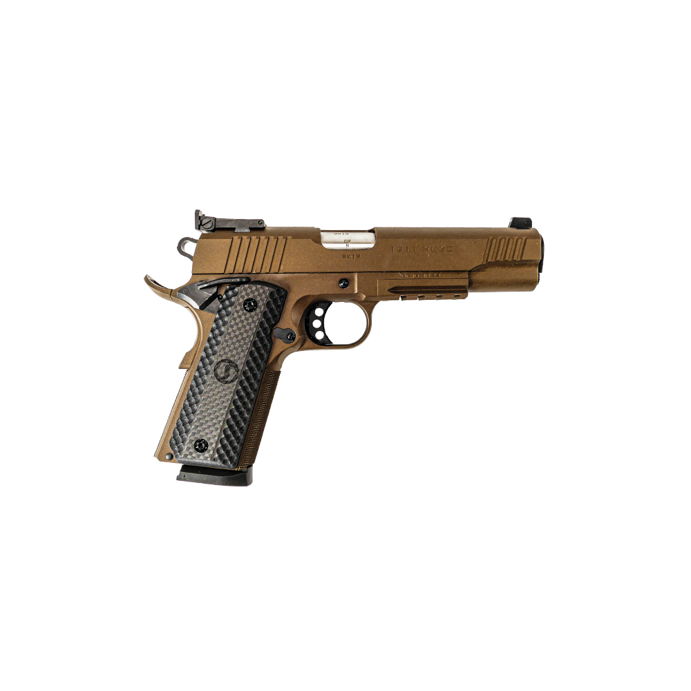Schmeisser 1911 - 5'' - cal. 9x19mm i Thunder Bronze er en klassisk single-stack pistol, optimalisert for å matche oppfinnerens visjon. Hver eneste tilbehør er blitt perfeksjonert gjennom et århundre med erfaring og kunnskap fra millioner av skyttere. Resultatet er en pålitelig høyytelses pistol med presisjonsnøyaktighet.