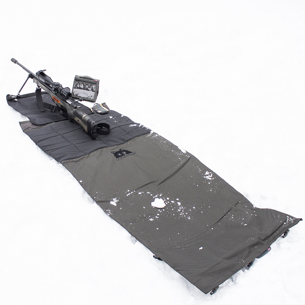 ULFHEDNAR Shooting Mat gir utmerket beskyttelse mot fuktighet og smuss mens du ligger og skyter. Denne matte er designet for sikker skyting i kombinasjon med en bipod, og har en tab hvor føttene til bipoden kan plasseres. Den fremre delen av matten er i tillegg forsterket for ekstra holdbarhet.