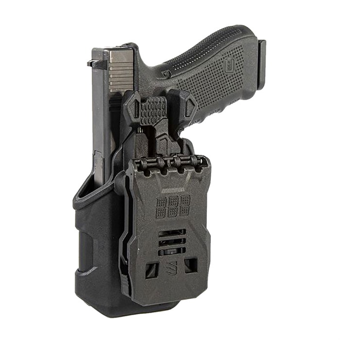 With its streamlined thumb-activated retention, the T-Series keeps your firearm at the ready while maintaining total security. Thanks to a drawing motion that operates off of the Master Grip Principle, you'll be able to get into the fight under even the most stressful of circumstances. A combination of reinforced outer polymer and smooth, sound-dampening, hydrophobic lining ensures your T-Series will perform no matter the elements and situation. Included with the L2C is the Quick Dual Release Belt Loop (attached) and the 2-Slot Belt Loop. Jacket Slot Belt Loop sold separately.