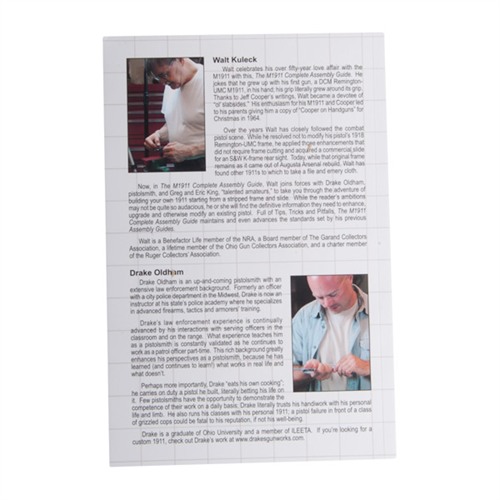 Beskrivelse: 250 sider. 6" x 9". Myk perm. Over 400 fotografier og illustrasjoner. Dette følgevolumet til The M1911 Complete Owner’s Guide tar deg steg-for-steg gjennom byggingen av en tilpasset 1911-pistol fra komponentdeler, eller ved å oppgradere en standardpistol til en presisjonsmatchvåpen. Den forklarer ikke bare "hvordan" en prosedyre utføres, men også hvorfor det gjøres, advarer om fallgruver, gir tips, og beskriver de resulterende fordelene.