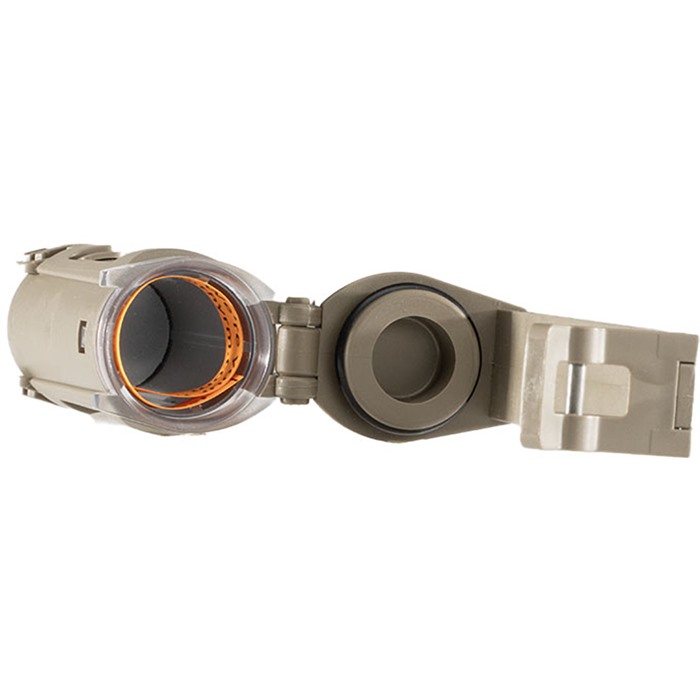 CELLVAULT-18 BATTERY STORAGE FOR 18350 AND 18650 Protect your premium 18650 and 18350 batteries while keeping them immediately accessible, with the CellVault-18. Premium batteries require protection from physical and environmental damage but need to remain accessible to keep advanced tactical lights running at full power. The CellVault-18 takes attachable battery storage to the next level with new features like side windows that help you verify gear status, a metal locking latch, and waterproof double-layer construction. FEATURES: Holds 1 18650 or 2 18350 Rechargeable Batteries Waterproof O-ring seal rated to IPX7 at 2 meters for 30+ minutes Folding metal latch for simple installation and positive attachment Silicone foam shock absorber/noise silencer Clear side windows allow for gear status checks Slim profile: less than 1 MOLLE/PALS column wide for easy integration into existing gear configurations Designed and manufactured in the USA INSTALLATION: Unlock the bottom latch and open the CellVault-18. Fold the latch flat to reduce profile. Insert the rigid strut through MOLLE/PALS Webbing. Unfold the latch to 90 degrees. Verify foam shock absorber is at the bottom of the CellVault-18 tube. Insert battery (or batteries) with the positive (+) terminal towards the foam at the bottom. Close the tube and latch, making sure no material is caught in the tube/cap interface.