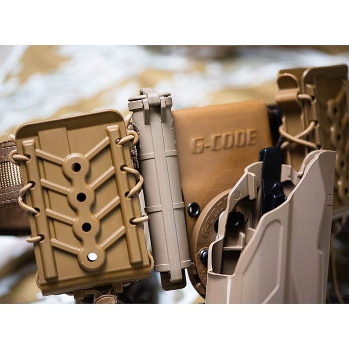 - Slank vertikal profil på mindre enn 1 MOLLE webbing-kolonne, som frigjør plass til annet utstyr inkludert førstehjelpsutstyr, ammunisjon og verktøy
