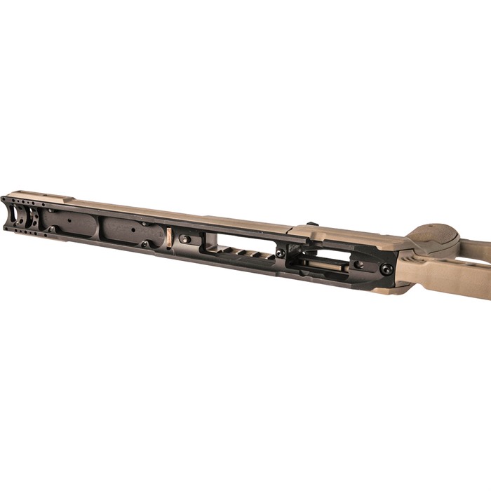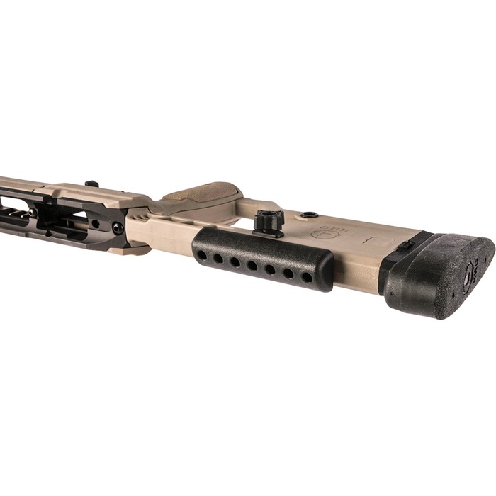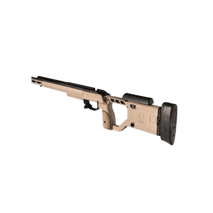 X-Ray Chassis (Generation 4) Unprecedented value...This is what the X-Ray chassis provides to you. When you pick up the X-Ray, it will feel nice and light compared to other chassis. You'll have nearly identical ergonomics to the Whiskey-3 with only a little more time involved in adjusting the different aspects like the length of pull. Furthermore, you'll have all the standard benefits of a chassis like the use of AICS magazines, a variety of mounting points for slings, barrier stops, etc., and aluminum block bedding for the action while not having to sell off a kidney to pay the price of admission. To accomplish Kinetic Research Group's design intent, they kept the features that everyone wants and needs and eliminated those that weren't necessary. Then they utilized efficient manufacturing processes to keep production costs down and in turn keep the price to the shooter down. The end result is a hybrid aluminum and polymer chassis that we think you'll love. KRG is proud to present the X-Ray chassis, the result of years of careful design, thought, refinement, and hard work. The change is a new one piece backend, which comes standard with tool-less buttpad height and cant adjustment, as well as a ambidextrous cheekpiece thumbscrew. The Tikka inlet accepts T3, T3x, and CTR versions, however slight mods may be required on the trigger-guard for the T3 TAC A1 to function properly. Tikka rifles accept AICS pattern mags with the exception of the Magpul AICS polymer mags.