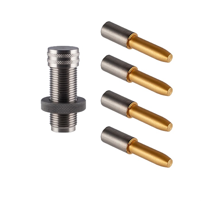Sinclair TiN Coated Turning Mandrel Kit tilbyr også vårt populære Expander Die sammen med våre mest populære størrelser av TiN Coated Expander Mandrels. Disse mandrelene er dimensjonert til 0.001” under kulediameter og er presisjonsbearbeidet fra solid karbidmateriale for å oppnå de strammeste toleransene.