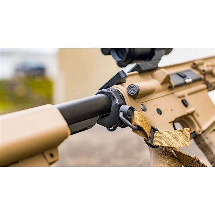 TRI-BASE BUFFER TUBE SLING MOUNT fra GROVTEC US er designet for å gi deg flere monteringsmuligheter for slynge på ditt mil-spec buffer tube.