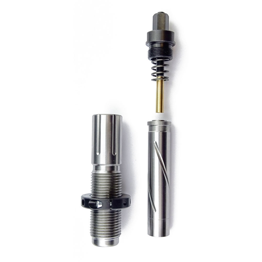 Takket være guide-sleeven, som er modellert etter patronkammeret, vil hylsen få perfekt aksial veiledning under setteoperasjonen. I tillegg vil kulen bli veiledet i samme prosess. Dette sikrer perfekt konsentrisitet.