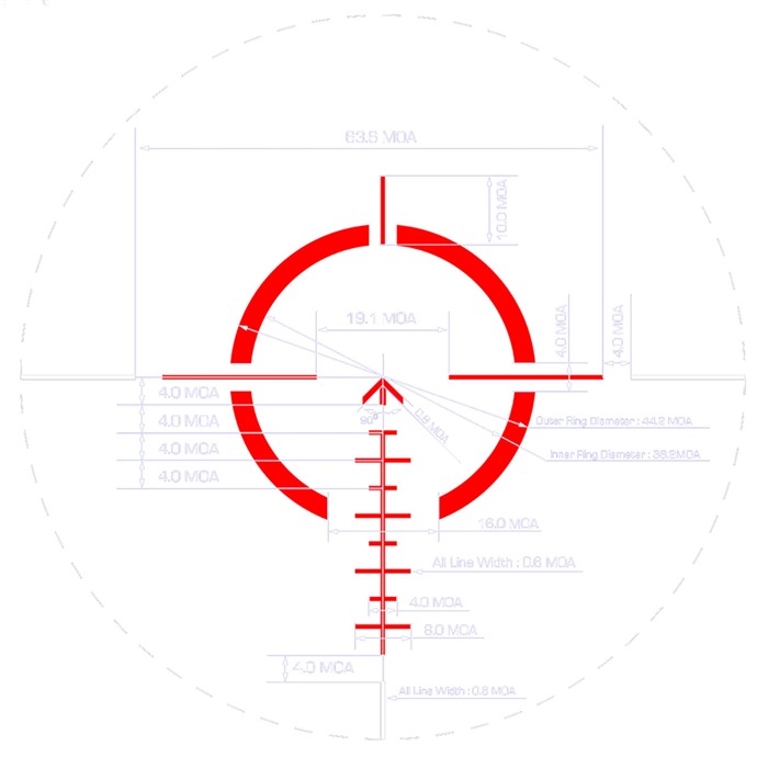 - Trident retikkel: Perfekt for rask måloppdagelse på nært hold, samtidig som det gir mulighet for mellomdistanse-engasjementer med enten 5.56/.308 BDC eller MOA stige.