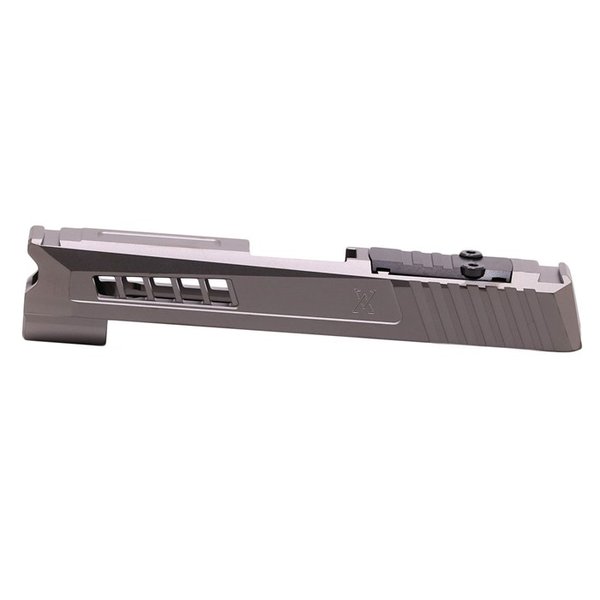 AXIOM SLIDE MED RMR KUTT FOR SIG SAUER P365XL, tilgjengelig i Stealth Gray, er en 100% amerikansk produsert og designet slide. Dette er en helt ny, ferdig slide (strippet), så det er ikke nødvendig å sende inn din egen.