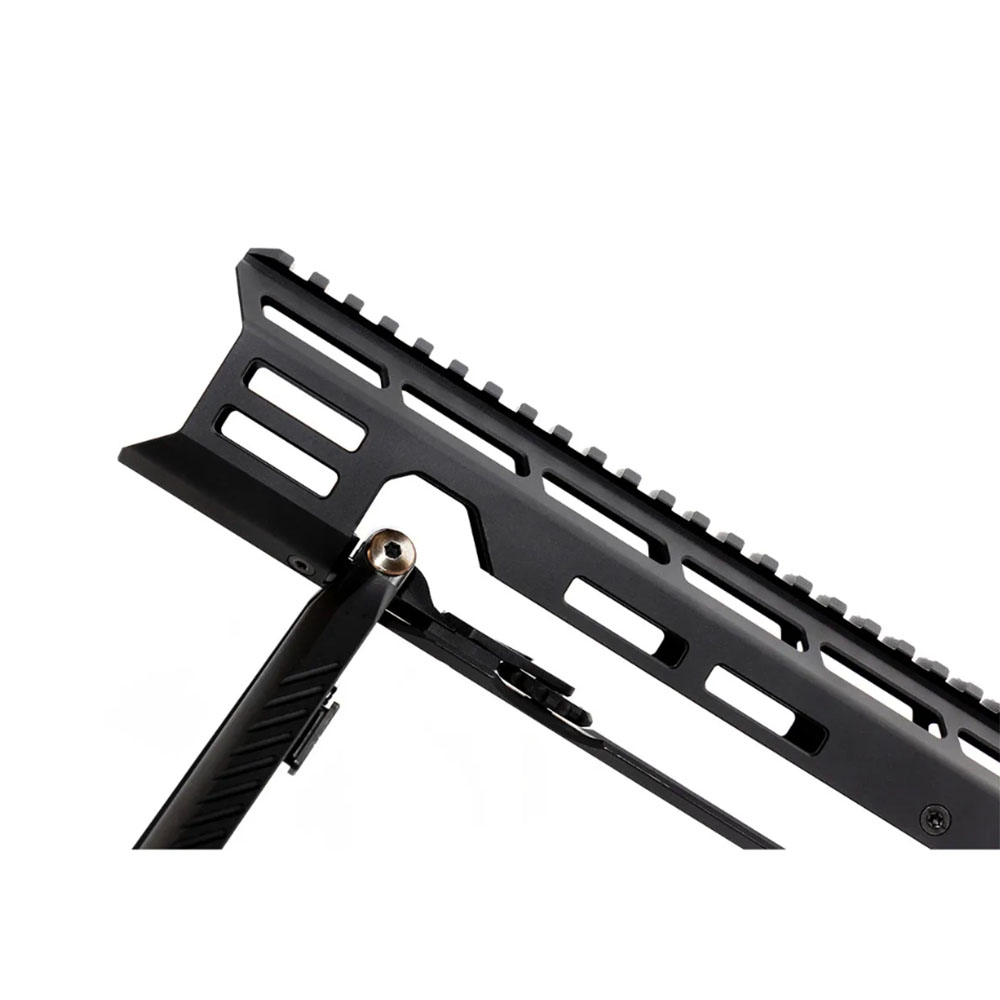 850050265108 Balansert. Integrert. Nøyaktig. BLK LBL Bipod sin innovative design med barrel-through lar riflen å sitte 'i' bipoden, i stedet for 'på' den, med rotasjonsmidten til bipoden effektivt sentrert på løpet, noe som gjør den iboende mer stabil. Resultatet er en balansert rifle uten de topptungete tendensene som kan komme fra store optikker. Kule- og sokkelleddet gir flytende bevegelse for forbedret målfangst og nøyaktighet. Med 40 grader panorering og 15 grader helling i hver retning, er justering av benlengde for å nivåere kikkertsiktet en ting fra fortiden. Når den ikke er i bruk, kan bena på BLK LBL Bipod enkelt foldes bakover, flush med håndbeskytteren. Dette betyr at de ikke vil hekte seg fast i klær, utstyr eller grener når du er i bevegelse, og ikke vil forstyrre når du skyter fra håndholdt posisjon, fra en barrikade, eller til og med når du lagrer riflen din.