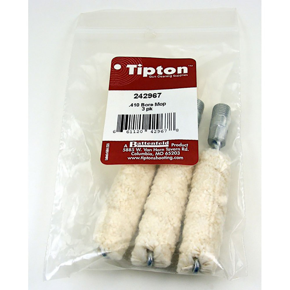 Tipton Bore Mop er laget av 100% bomull og er ultra-absorberende. Disse moppene holder og transporterer løsemidler, smøremidler og konserveringsmidler inn i løpet og kammeret på våpenet ditt. De er perfekte for å påføre store mengder moderne kobberløsemidler til tilsmussede løp.