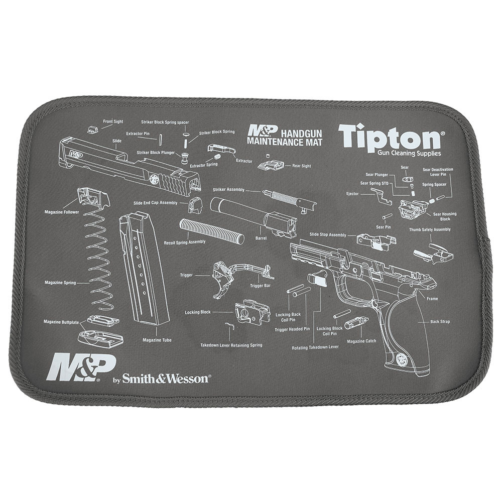 Tipton M&P Maintenance Mat er laget av et ideelt materiale for å legge på arbeidsbenken din mens du rengjør eller demonterer våpen.