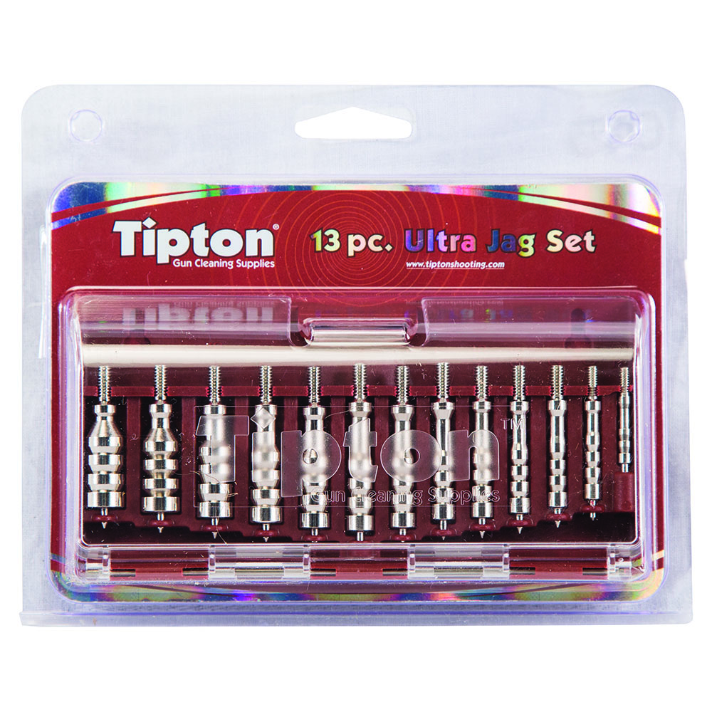 Tipton Ultra Jag Set inkluderer børster i følgende kalibre: .17, .20, .22, .243/6 mm, .25/6.5 mm, .270/7 mm, .30, .338/8 mm, .5/9 mm, .375, .40, .44 og .45. Dette settet gir deg alt du trenger for effektiv rengjøring av våpen.