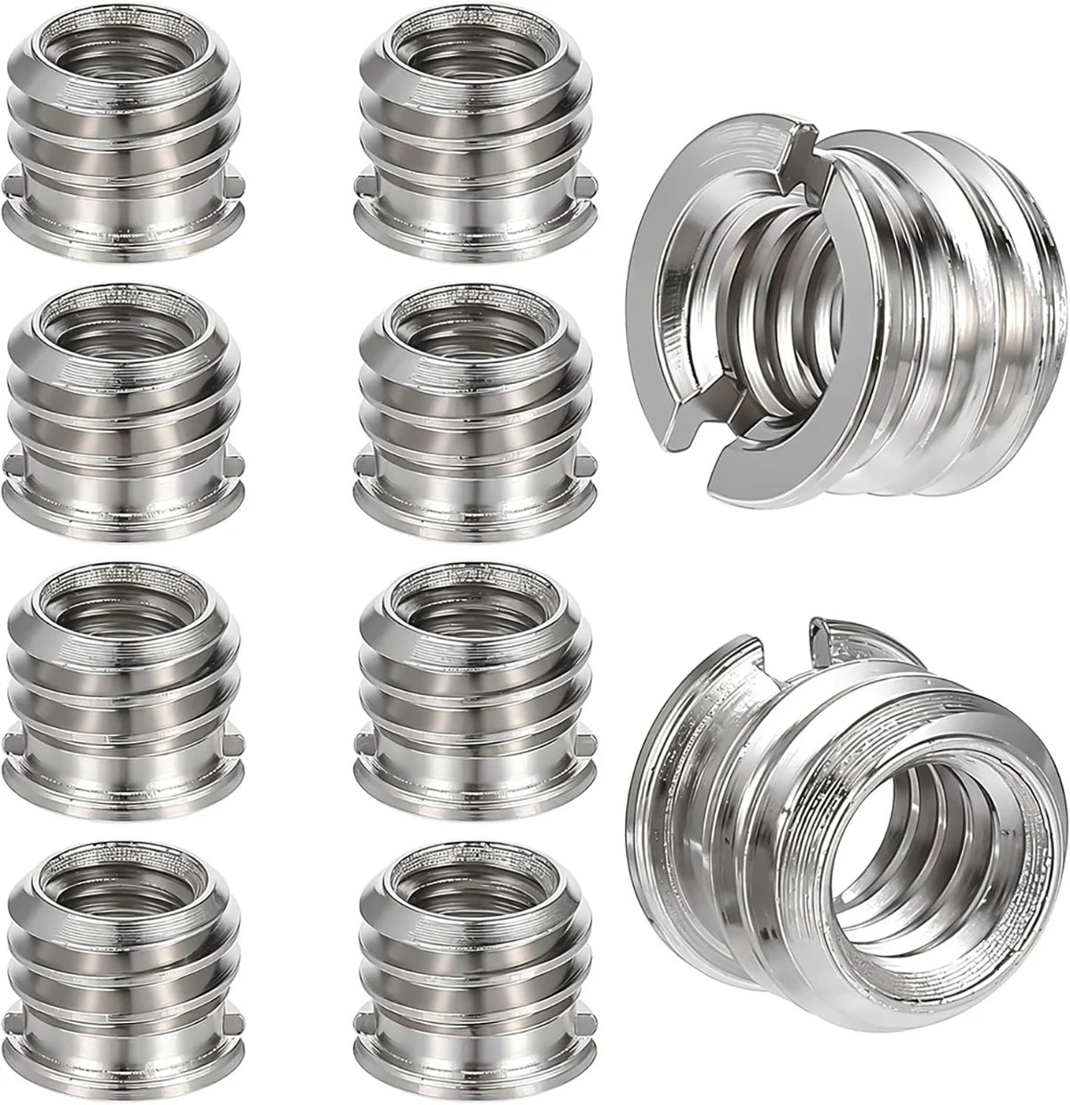 Denne kompakte reduksjonsbushingen / konverteren lar deg tilpasse mellom to vanlige tripod gjengestørrelser: 1/4"-20 female til 3/8"-16 male. Leveres i en pakke med 10 stk, og er perfekt for å utstyre flere oppsett eller for å ha reservedeler i utstyret ditt.