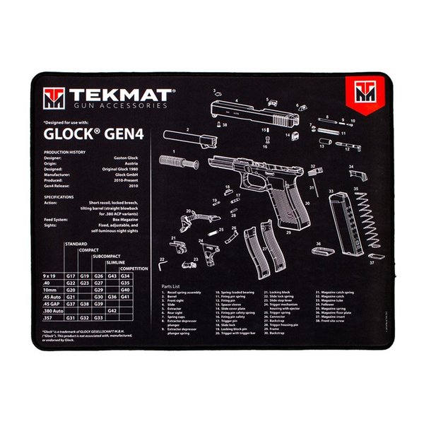 Den nye Ultra 20 Pistol Cleaning Mat fra TekMat fortsetter denne arven med noen forbedrede elementer. Hver TekMat Ultra 20 Pistol Cleaning Mat er konstruert ved hjelp av en klar dye-sublimasjons trykkteknikk som gjør matten vanntett, ripebestandig, olje- og kjemikalieresistent og vaskbar.
