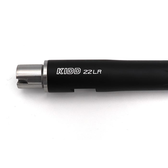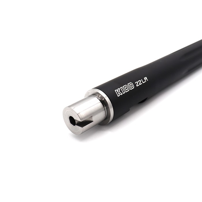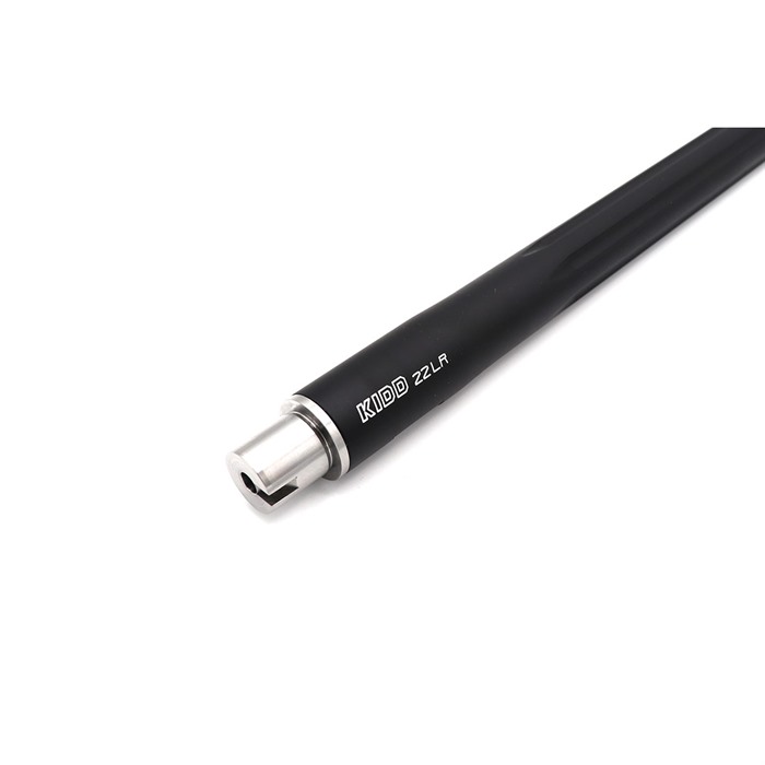 Another superb aftermarket barrel for the .22LR by Kidd Innovative Design. This Ultra Lightweight Fluted Bull Barrel weighs just over a pound and yet is a great shooter! KIDD has seen a niche in their barrel market for a much lighter weight barrel and believe their customers will benefit from our durable steel barrel anchored by a stainless-steel breech and stainless-steel muzzle design. As with all our barrels the bore is hand lapped here at KIDD. This will be great for people who don't want to tote around a heavy rifle but still want a high-quality product. At 1.25 pounds and 16 1/4 inches in length this is their lightest rifle barrel. KIDD product testing has resulted in 1/2"" groups at 50 yards. Though, they don't guarantee this barrel to group at that rate. A threaded muzzle is an option on the barrel and their threading is 1/2""-28 and is available with a protective cap. FEATURES: Aftermarket replacement barrel for the 10/22 16 1/4 inches in length 1 1/4 pounds .870"" diameter "High cool factor" Fluting Stainless Steel Breech and Muzzle Perfect for varmint hunting or fun target Stainless Steel Muzzle threading option Bull barrel stock channel Barrel installation: Depending on your receiver, if there is paint build up in the receiver mortise be sure to scrape that out. KIDD recommend using an anti-seize compound to assist in installation. Anti-seize is readily available at automotive stores. It is best if you can get the barrel tenon started into the receiver mortise, then turn it over and tap the back of the receiver with a rubber mallet. Be sure to line the extractor slot up as you are installing the barrel. Your barrel is ready to shoot, just run two magazines through it before you really start looking at group size. Do this each time you change brands of ammunition as well. Keep the chamber clean, but don't clean the bore too much you will decrease accuracy. Depending on the ammo, clean the bore around every 500 rounds.