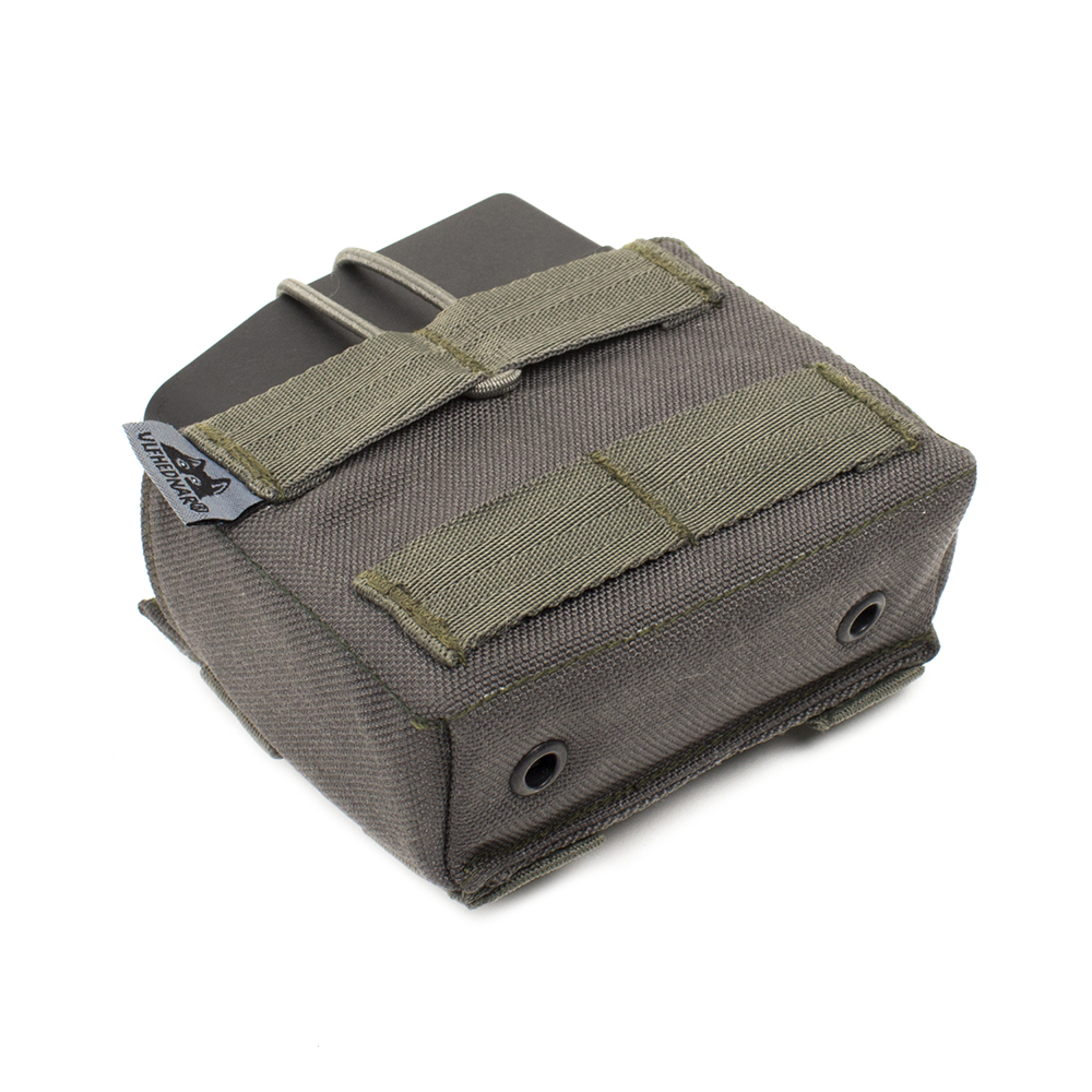 0745114707321 Universalt magasinlomme fra Ulfhednar hvor selv store AICS magasiner kan passe. Takket være borrelåspadene og bungee-løkken kan lommen justeres til mange magasinstørrelser. Den er laget av slitesterk Cordura og har molle-løkke på baksiden. Opptil to lange rifle magasiner kan oppbevares i lommen. Denne magasinlommen er utstyrt med molle-standard for festing. Den kan ikke festes på Lasercut belter og vester, som er forskjellige fra molle.Fjernet fra programmet