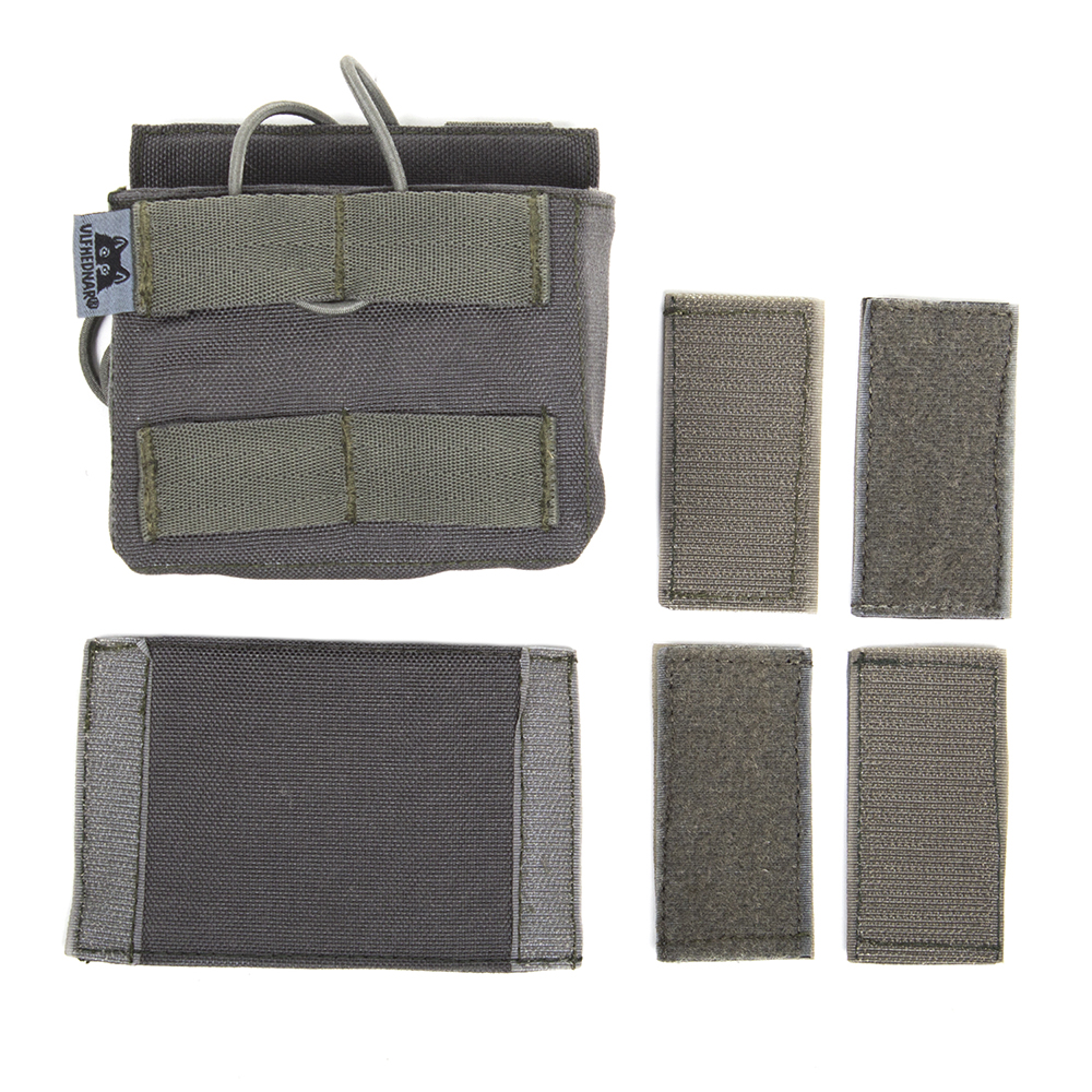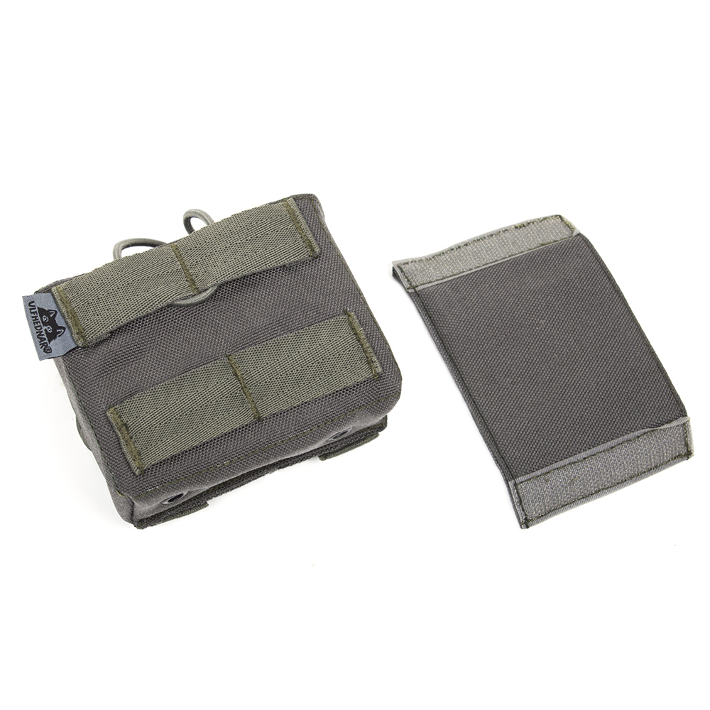 Denne magasinlommen er utstyrt med MOLLE-standard for feste. Den kan ikke festes til Lasercut belter og vester, som er forskjellige fra MOLLE.