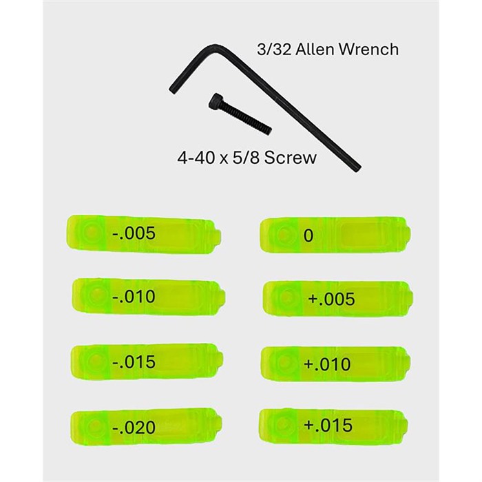 Fabrikkens låseinnstilling er “0”. Hvis denne innstillingen ikke fungerer for deg, kan du velge + (høyere lås) eller – (lavere lås) for å tilpasse innstillingen til ditt våpen.