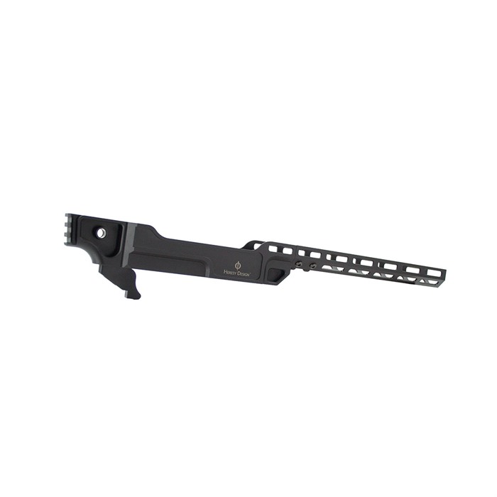 M-LOK® railen gir en allsidig plattform for montering av lys og andre tilbehør, slik at du kan tilpasse oppsettet ditt etter dine skytebehov. Leveres med chassis, rail, grepinnsats, grepinnsatsskrue, 6 railskruer og 2 unbrakonøkler.