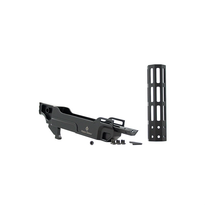 Vendetta Standard Chassis med Rail og Vendetta Standard Chassis med Short Rail 6.375" fra HERESY DESIGN INC. er laget av høykvalitets aluminium og gir ikke bare en estetisk oppgradering av ditt våpen, men også enestående holdbarhet og ytelse.